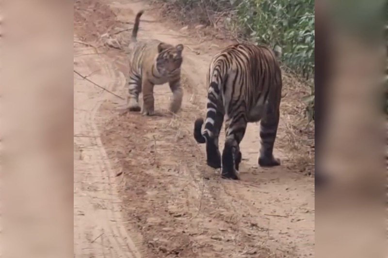 तीनों बाघ जंगल ट्रैक के बीच बैठे हुए नजर आए। आगे दोनों शावक और सबसे पीछे बाघिन थी। इस दुर्लभ दृश्य को वहां मौजूद पर्यटकों ने अपने मोबाइल कैमरों में कैद कर लिया, जिसका वीडियो भी सामने आया है। यह दृश्य सरिस्का क्षेत्र में बाघों के सुरक्षित आवास और सफल संरक्षण प्रयासों का संकेत है।