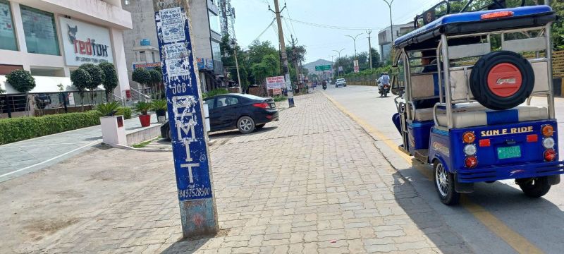 मिनी सचिवालय से थोड़ा आगे सड़क चौड़ीकरण किया जा रहा है। एक होटल के सामने फुटपाथ बनाया गया है। सड़क चौड़ीकरण के दौरान बिजली के पोल वहां से पीछे शिफ्ट किए जाने थे लेकिन पीछे हॉटल का प्रवेशद्वार होने के कारण इन पोलों को पीछे नहीं किया गया और वहीं छोड़ दिया गया। इन्हीं बिजली पोल के चारों ओर टाइलें लगाकर फुटपाथ बना दिया गया। अब खंभे राहगीरों की राह में रोड़ा बने हुए हैं।