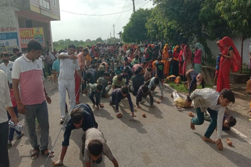 गोलाकाबास कस्बे में भक्ति और श्रद्धा का दृश्य देखने को मिला, जब सैकड़ों नन्हें बच्चों ने भानगढ़ मोड़ से लेकर प्रसिद्ध भानगढ़ हनुमान मंदिर तक लगभग एक किलोमीटर लंबी दंडोती लगाई। बच्चों ने जोश, उमंग और सनातन धर्म के प्रति गहरी आस्था के साथ यह कठिन तपस्या पूर्ण की।
