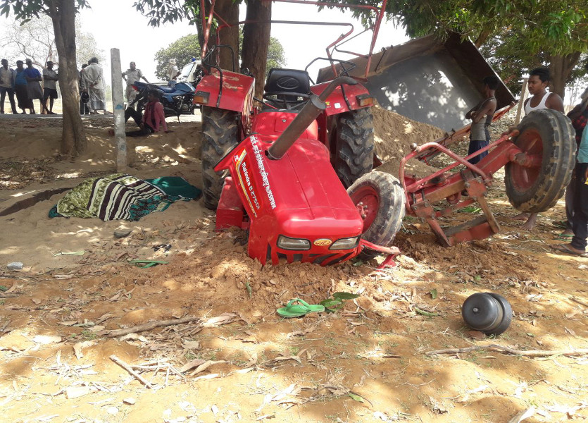 ट्रैक्टर ग्राम कटिंदा से निकलकर करीब 200 मीटर दूर ही पहुंची थी कि ड्राइवर की लापरवाही से अचानक अनियंत्रित होकर पेड़ से टकराने के बाद पलट गया। हादसे में उसमें सवार जयपुर, झाबर निवासी केंदी बाई पति सियंबर 65 वर्ष तथा ग्राम कटिंदा निवासी फूलको बाई पति शिवनारायण की दबने से मौके पर ही मौत हो गई।