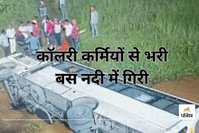 कॉलरी कर्मियों से भरी बस नदी में गिरी(photo-patrika)