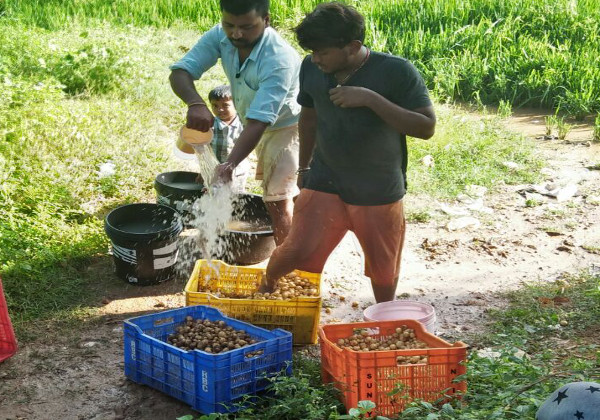 शहर में लाल आलू की डिमांड काफी ज्यादा है। इसी का फायदा इन दिनों बिचौलियों द्वारा उठाया जा रहा है। सस्ते दर पर सफेद आलू खरीदकर उसे पहले साबुन पानी से धोया जाता है। इसके बाद उसे लाल करने के लिए रंग में डाला जाता है। इसे मिलाने के लिए पैर से दबाया जाता है।