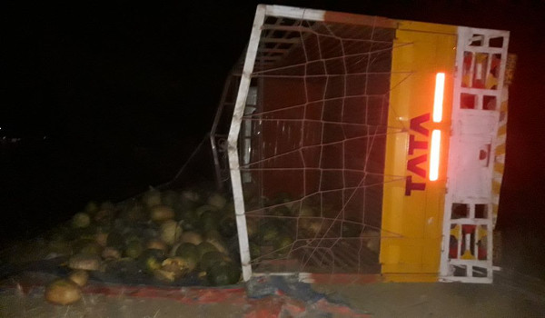 अंबिकापुर-बनारस मार्ग पर मंगलवार की शाम लगभग 4 बजे फूलीडूमर घाट पर तेज रफ्तार मिनी ट्रक क्रमांक यूपी 81 बीटी 2139 अनियंत्रित होकर पलट गया। इससे ट्रक में लोड कुम्हड़ा सड़क पर बिखर गया। मिनी ट्रक में सवार चालक, खलासी व मालिक मौके से वहां से गुजर रहे दूसरे ट्रक से फरार हो गए। इधर मौके पर जब लोग पहुंचे तो वहां का नजारा देखकर चौंक गए।