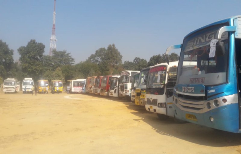 क्षेत्रिय परिवहन कार्यालय के अधिकारियों द्वारा पॉलिटिक्रक कॉलेज मैदान में बसों का अधिग्रहण कर रविवार से ही खड़ा करा लिया गया है। इस विधानसभा चुनाव के दौरान वाहनों के मालिकों को निर्वाचन आयोग द्वारा भुगतान भी अधिक किया जा रहा है।