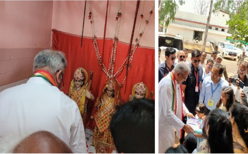 बुधवार की दोपहर करीब एक बजे हेलीकॉप्टर से सीएम भूपेश बघेल कुसमी पहुंचे। यहां के थाने में राम-जानकी मंदिर में पूजा-अर्चना की। इसके बाद पुलिसकर्मियों के परिवारों से मुलाकात कर चॉकलेट बांटा। इस दौरान पुलिसकर्मियों के परिजनों ने उन्हें साप्ताहिक अवकाश तथा पुरानी पेंशन योजना लागू करने के लिए धन्यवाद दिया।