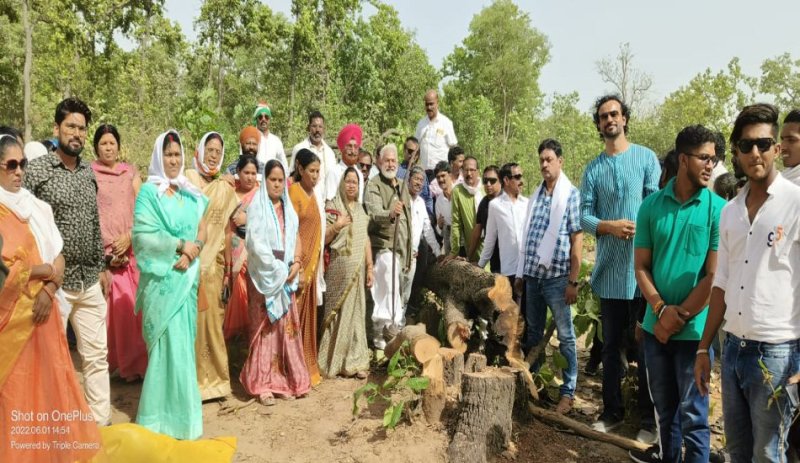 अंबिकापुर. Parsa Coal Block protest: हसदेव अरण्य क्षेत्र में कोयला खदान के लिए वनों की कटाई के विरोध में आंदोलनरत ग्रामीणों को सरगुजा कांग्रेस ने समर्थन दिया है। औषधीय पादप बोर्ड के अध्यक्ष बालकृष्ण पाठक के नेतृत्व में जिला कांग्रेस और जिला और जनपद पंचायत सदस्यों ने आंदोलन स्थल पर जाकर ग्रामीणों की हौसला अफजाई की। पेड़ों की कटाई (Trees cutting) रोकने के लिए घनघोर जंगल में डेरा डाले ग्रामीणों ने कांग्रेस की टीम को प्रशासन द्वारा आधी रात को काटे गए वृक्षों को ग्रामीणों ने दिखाया। धरने पर बैठे ग्रामीणों ने कहा कि प्रशासन ग्राम सभा के फर्जी प्रस्ताव के सहारे हमारी जमीनें लूट कर कोल कंपनी को देना चाहता है।