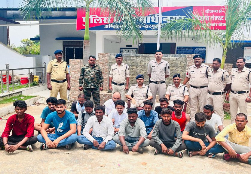 आरोपियों में प्रभात लकड़ा निवासी जोबाटिकरा आदर्शनगर थाना सीतापुर, अमित कुजूर ग्राम अजिरमा थाना गांधीनगर, ऐश्वर्या कुमार निवासी श्यामनगर भटगांव, निलेश यादव श्यामनगर सकलपुर, अजय विश्वकर्मा निवासी नमनाकला, अखिलेश निवासी चोगोपारा जशपुर, संजय मिंज नमनाकला, आशित एक्का, निवासी सांडबार जंगलपारा, सकलत अली निवासी बिलासपुर चौक,
