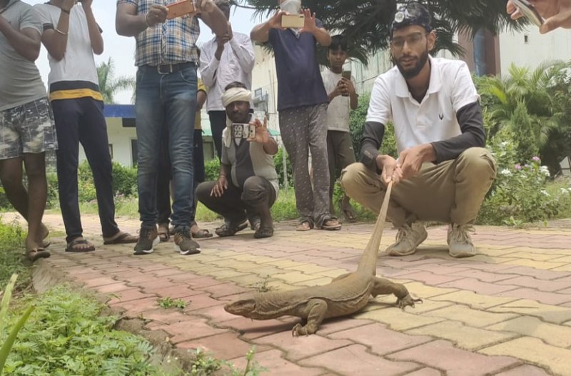 यह देख लोगों ने उसे सांप समझा और इसकी जानकारी स्नेकमैन सत्यम द्विवेदी को दी। सत्यम व उसकी टीम ने लोगों का भय दूर करते हुए एक बार फिर से गोह को पकड़ लिया। गोह को पकडऩे के बाद उसे लेकर सत्यम व उसकी टीम वहां से चली गई।