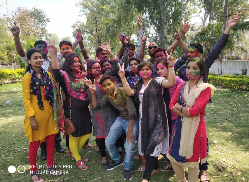गुलाल के साथ ही एक दूसरे से रंगने लगे और परिसर में होली के पूर्व मस्ती का नजारा आ गया। छात्राओं ने 'मैं नागिन-नागिन, नागिन डांस नचना गाने पर भी जमकर मस्ती की।