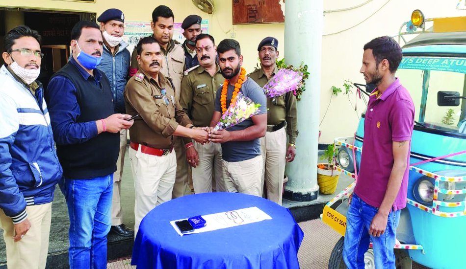 ऑटो चालक लक्की नवरंग की ईमानदारी (Honesty) देखते हुए कोतवाली थाना प्रभारी भारद्वाज सिंह, एसआई रामनरेश गुप्ता, एएसआई प्रमोद पांडेय, डाकेश्वर सिंह व स्टाफ ने उसे गुलदस्ता देकर सम्मानित किया।