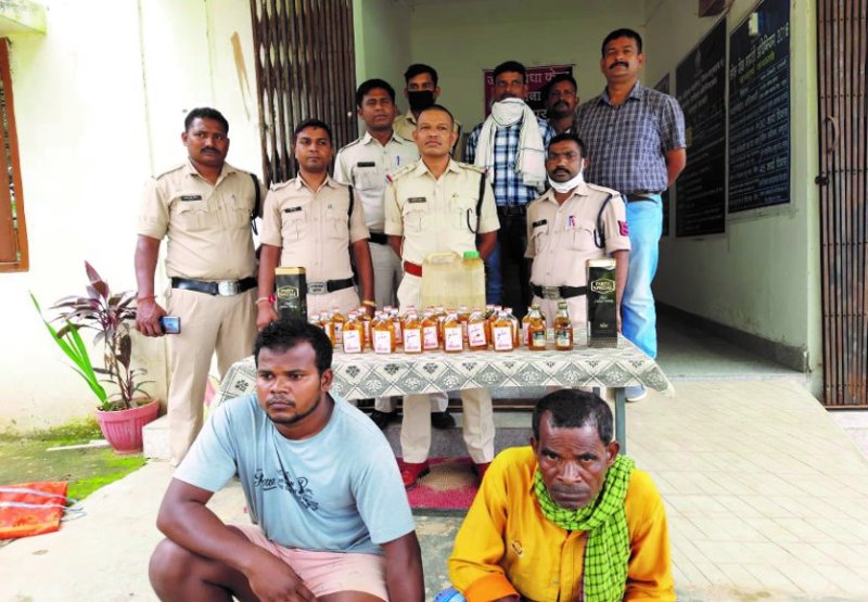 उदयपुर. उदयपुर पुलिस ने ग्राम परसा में छापामार कार्रवाई कर पिता-पुत्र को गिरफ्तार कर ९ लीटर महुआ व ६ लीटर अंग्रेजी शराब जब्त किया। दोनों लंबे समय से शराब (Illegal liquor) की अवैध बिक्री कर रहे थे। बेटे ने पुलिस को चकमा देने घर के किचन में गड्ढा खोदकर शराब छिपा रखी थी। वहीं गड्ढे के ऊपर पानी की टंकी रख दी थी। पुलिस ने दोनों को जेल भेज दिया है।