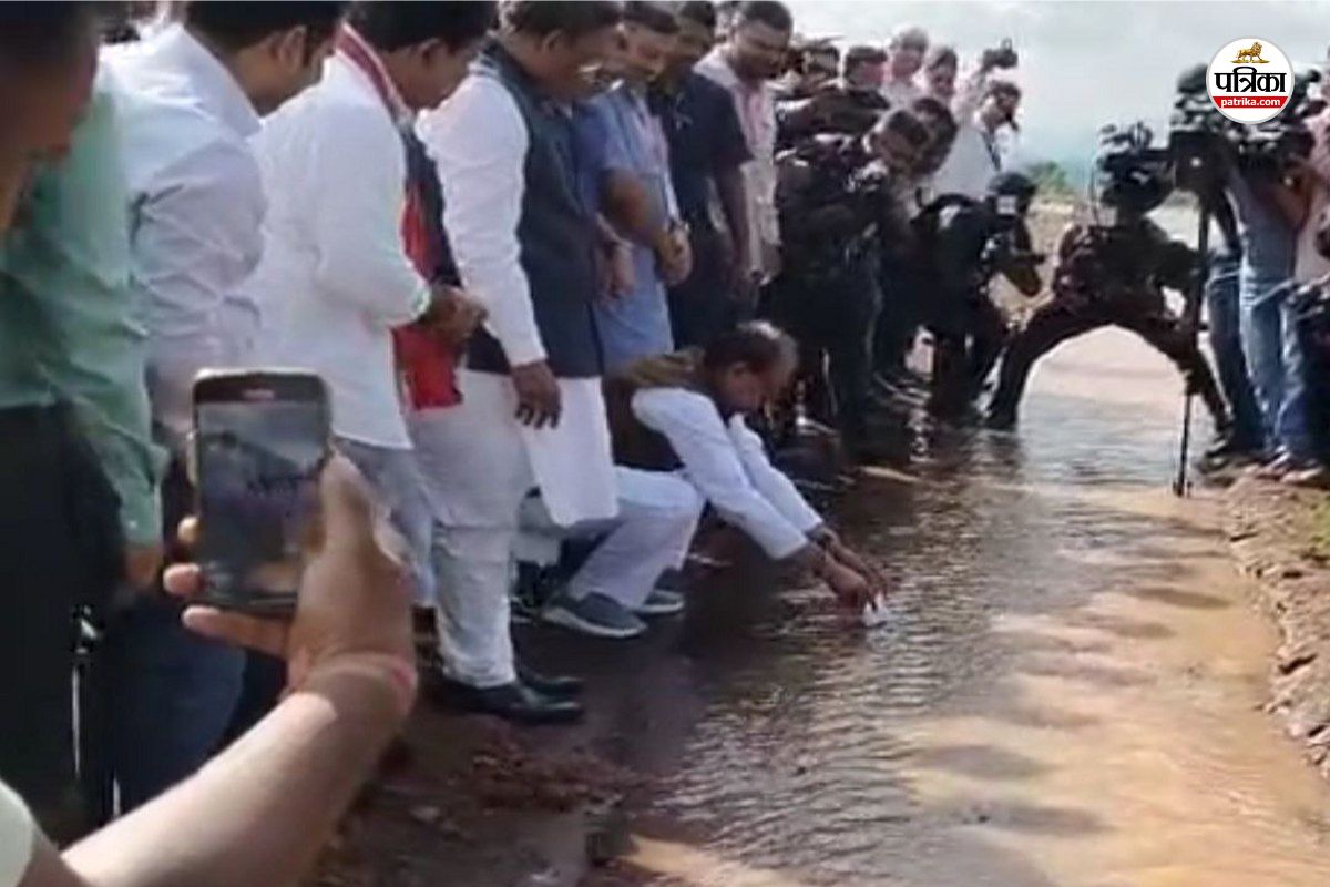 उल्टापानी में कागज की नाव चलाते केंद्रीय मंत्री शिवराज सिंह चौहान (Photo- Patrika)