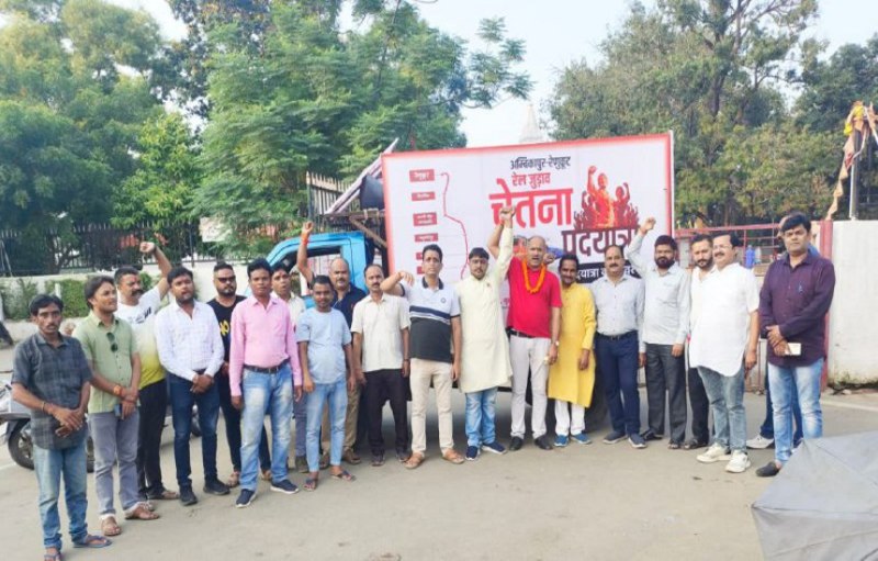 अंबिकापुर. Ambikapur-Renukoot Rail line Padyatra: अंबिकापुर-रेणुकूट रेल विस्तार को लेकर सरगुजा क्षेत्रीय सर्वदलीय रेल संघर्ष समिति के तत्वावधान में आयोजित रेल जुड़ाव चेतना पदयात्रा हेतु सरगुजा की आराध्य मां महामाया के मंदिर में पूजा-अर्चना कर यात्री रेणुकूट के लिए रवाना हुए। यह पदयात्रा 1 से 4 सितंबर तक रेणुकूट से अंबिकापुर तक आयोजित है। इस पदयात्रा के दौरान रेलवे (Railway) द्वारा प्रस्तावित समस्त 11 स्टेशनों पर सभा एवं पदयात्रा का आयोजन रेल संघर्ष समिति द्वारा किया जाएगा। 1 सितंबर को रेणुकूट स्टेशन से पदयात्रा शुरु होगी, जहां पर स्थानीय जनप्रतिनिधियों एवं आमजनों की उपस्थिति में सभा का भी आयोजन होगा। इसके बाद यात्रा आगे के लिए रवाना होगी।
