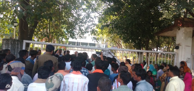 नौकरी की मांग को लेकर जीएम ऑफिस का घेराव, गेट पर जड़ा ताला