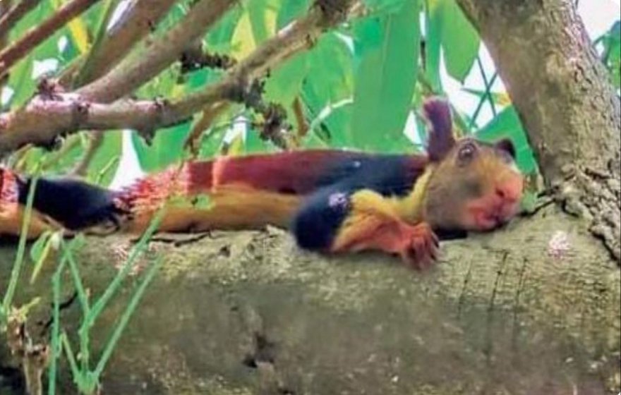 अंबिकापुर. Rare Railbow Squirel: जंगलों में यूं तो कभी-कभी कई प्रकार के दुर्लभ जीव जंतु देखने को मिलते हैं इनके दर्शन कभी-कभी ही होते हैं। ऐसा ही एक मामला सरगुजा जिले के उदयपुर विकासखंड अंतर्गत मतिरंगा जंगल से सामने आया है। यहां एक पक्षी प्रेमी ने दुर्लभ इंद्रधनुषी गिलहरी को अपने कैमरे में कैद किया है, इसे मालाबार जायंट गिलहरी (Malabar Giant Squirel) के नाम से भी जाना जाता है। उसके शरीर पर कई रंग पाए जाते हैं इस कारण इसे इंद्रधनुषी गिलहरी कहा जाता है।