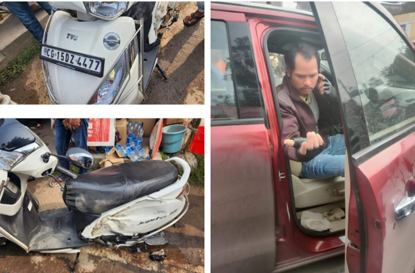 नशे में धुत चालक ने फोकटपारा मोहल्ले में ही स्कूटी सवार डॉक्टर डीके सिन्हा को टक्कर मार दी। हादसे में डॉक्टर घायल हो गए और उनकी स्कूटी भी क्षतिग्रस्त हो गई।