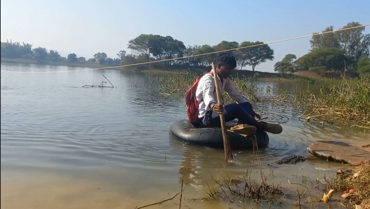 हाथों में स्कूल का बस्ता लिए नौनिहाल सपनों को संवारने के लिए जान तक दांव पर लगा रहे हैं। ट्यूब के सहारे गहरे पानी को पार कर स्कूल चलो अभियान को सफल बना रहे हैं। इन्हें स्कूल जाने के लिए बड़ी तैयारी करनी पड़ती है, गहरे पानी को पार करने में समय लगता है।