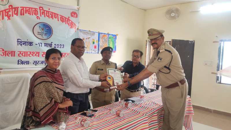 अंबिकापुर। तंबाकू निषेध अभियान के तहत जिला चिकित्सालय के सभाकक्ष में राष्ट्रीय तंबाकू नियंत्रण कार्यक्रम का आयोजन किया गया। कार्यक्रम में तंबाकू के दुष्प्रभाव की रोकथाम पर पर चर्चा करने के साथ ही जमीनी धरातल पर अभियान चलाने के निर्देश संबंधितों को दिए गए। जिला स्वास्थ्य समिति द्वारा आयोजित राष्ट्रीय तंबाकू नियंत्रण कार्यक्रम में अतिरिक्त पुलिस अधीक्षक मधुलिका सिंह मुख्य अतिथि थीं। कार्यक्रम की अध्यक्षता डिप्टी कलेक्टर डॉ. वर्षा बंसल ने की। सीएमएचओ डॉ. आरएस सिंह एवं उनकी टीम ने अतिथियों का आत्मीय स्वागत किया।