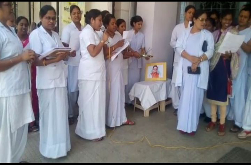इसके बावजूद भी शासन द्वारा कोई निर्णय नहीं लिए जाने के बाद एक सप्ताह पूर्व मेडिकल कॉलेज अस्पताल के सभी स्टाफ नर्सों ने चार दिन तक दो घंटे काम बंद कर अस्पताल के बाहर एकजुट होकर विरोध प्रदर्शन किया था। इसके बावजूद भी शासन द्वारा कोई निर्णय नहीं लिया गया तो मंगलवार को उन्होंने अनोखा विरोध प्रदर्शन किया।