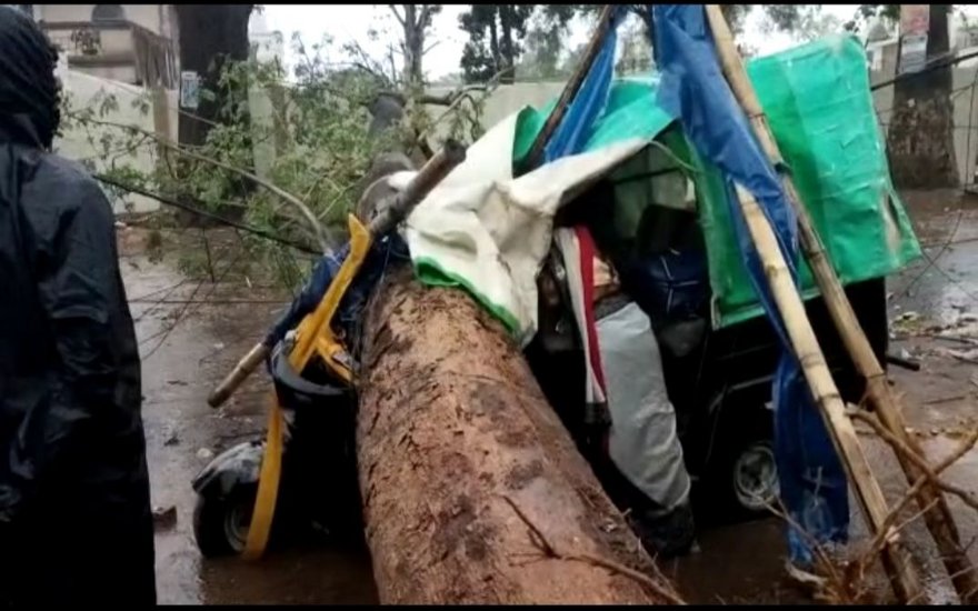 शनिवार की दोपहर से अंबिकापुर सहित आसपास के क्षेत्रों में तेज आंधी के साथ झमाझम बारिश हुई। बारिश के दौरान शाम को शहर के संजय पार्क से लगे पेट्रोल पंप के पास चलती ऑटो पर अचानक एक विशाल पेड़ गिर गया। हादसे में चालक नीचे दब गया। वह ऑटो में ही फंस गया।