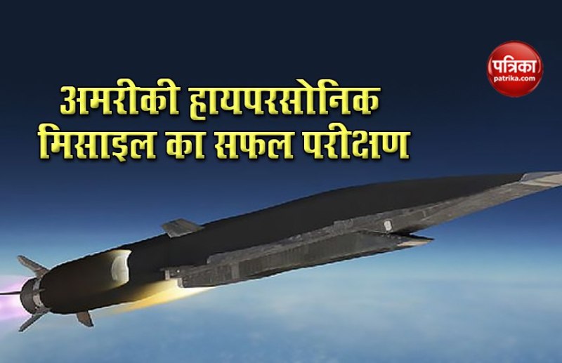 मीडिया रिपोर्ट्स के मुताबिक, इस हायपरसोनिक मिसाइल का परीक्षण प्रशांत महासागर ( Pacific Ocean ) में किया गया। अमरीकी सेना के एक वरिष्ठ अधिकारी ने बताया कि इस मिसाइल का सफल परीक्षण प्रशांत महासागर के ऊपर किया गया। बता दें कि अमरीकी राष्ट्रपति डोनाल्ड ट्रंप ( US President Donald Trump ) ने इस साल मई महीने में इस तरह की मिसाइल के परीक्षण का इशारा किया था।