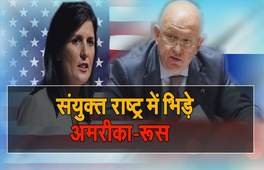 संयुक्त राष्ट्रः सीरिया में कथित तौर पर रासायनिक हमले के बाद संयुक्त राष्ट्र सुरक्षा परिषद की आपात बैठक हुई। इस मीटिंग में अमरीका और रूस के प्रतिनिधियों में तीखी बहस हुई। परिषद में अमरीका की स्थाई प्रतिनिधि निकी हेली ने कहा कि रूसी सरकार के हाथ सीरियाई बच्चों के खून में सने हैं। हेली ने रूस को चेताते हुए कहा कि अगर इस मामले में परिषद कुछ नहीं करेगा तो अमरीका कुछ न कुछ करने के लिए बाध्य होगा। उधर रुस के प्रतिनिधि वैसिली नेबांजिया ने अमरीका के आरोपों से इनकार किया। नेबांजिया ने कहा कि अमरीका जानबूझ कर रूस और सीरियाई सरकार को निशाना बना रहा है। नेबांजिया ने अमरीका को धमकी देते हुए कहा कि सीरिया में रूस की सेना तैनात है। वह अमरीका की किसी भी कार्रवाई का जवाब देने के लिए तैयार है।
