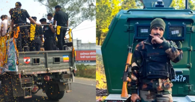 आगर मालवा के जवान बद्रीलाल यादव की पैतृक गांव नरवल में अंतिम यात्रा प्रारंभ हो गई है। उनके अंतिम संस्कार में शामिल होने के लिए हजारों लोग उमड़े हैं। 63वीं राष्ट्रीय राइफल्स बटालियन के ईएमई EME विभाग में नायक 32 साल के बद्रीलाल यादव जम्मू-कश्मीर के राजौरी में सड़क हादसे में शहीद हो गए थे। उनकी पार्थिव देह बुधवार को इंदौर एयरपोर्ट से नरवल लाई गई। शव वाहन पर रास्ते भर लोगों ने फूल बरसाए।