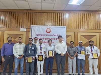 अहमदाबाद. पश्चिम रेलवे के अहमदाबाद मंडल के मंडल रेल प्रबंधक (डीआरएम) सुधीर कुमार शर्मा ने मंडल के 5 रेल कर्मचारियों को सुरक्षित ट्रेन परिचालन में उत्कृष्ट कार्य निष्पादन के लिए सम्मानित किया।