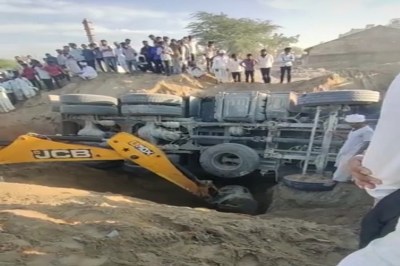 थराद पुलिस के अनुसार यह घटना शनिवार शाम को हुई। बनासकांठा जिले की थराद तहसील में खेंगारपुरा गांव के पास सड़क किनारे नाले को बनाने का कार्य चल रहा है। वहां लोग सड़क की दीवार बनाने के लिए मिट्टी निकालने का काम कर रहे थे। इस दौरान रेत से भरा एक डंपर अचानक पलट कर नाले में गिर गया।