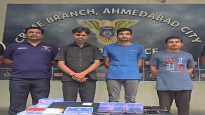 Ahmedabad. मुंबई क्राइम ब्रांच और ईडी कर्मी की फर्जी पहचान देकर सीनियर सिटीजन को डिजिटल अरेस्ट करके 8 करोड़ ठगने वाले गिरोह के तीन सदस्यों को क्राइम ब्रांच ने पकड़ा है। इनसे 32 मोबाइल फोन, दो लैपटॉप, दो स्वाइप मशीन, 21 क्रेडिट व डेबिट कार्ड किए जब्त हैं।
