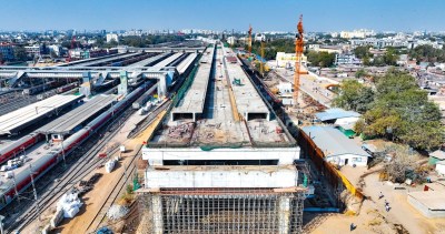 फिनिशिंग का काम जारी, साबरमती टर्मिनल स्टेशन पर प्लेटफॉर्म स्तर का निर्माण कार्य प्रगति पर