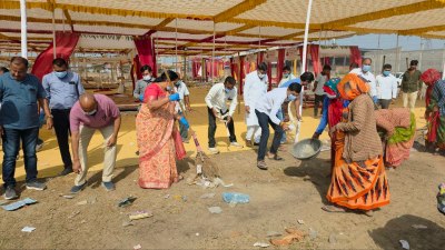 सांसद अपने परिजनों के साथ सोमवार सुबह आयोजन स्थल और क्षेत्र को प्लास्टिक मुक्त बनाने के लिए पहुंचीं। उनके साथ बड़ी संख्या में नेता शामिल हुए और इलाके में सफाई का अभियान चलाया। सासंद शोभना बारैया अपने परिजनों के साथ सोमवार सुबह हाथ में झाड़ू लेकर आयोजन स्थल पर पहुंचीं। उन्होंने इलाके से सारा कूड़ा-कचरा और गंदगी हटाने के लिए पूरे दिन नेताओं के साथ मिलकर अभियान चलाया।