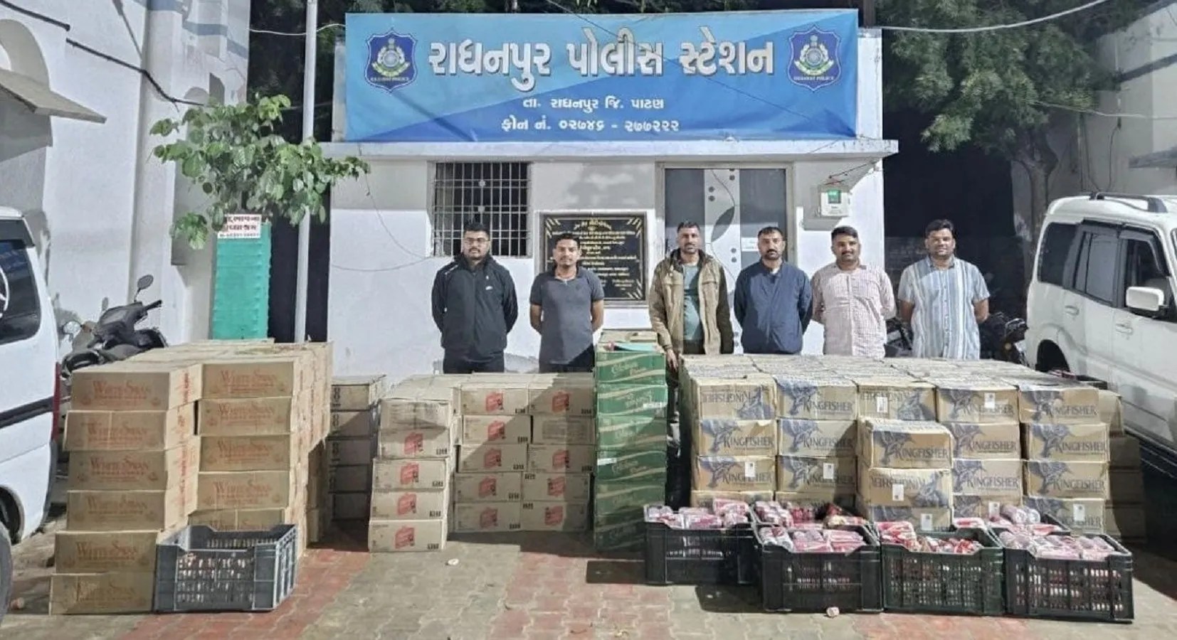 एलसीबी के पुलिस निरीक्षक आर.जी. उनागर के मार्गदर्शन में टीम राधनपुर पुलिस स्टेशन क्षेत्र में पेट्रोलिंग कर रही थी। इसी दौरान मुखबिर से सूचना मिली कि चलवाड़ा गांव की सीमा में रेलवे फाटक के पास स्थित एक खाली जगह पर रात के समय वाहनों से शराब लाकर हेराफेरी की जानी थी।