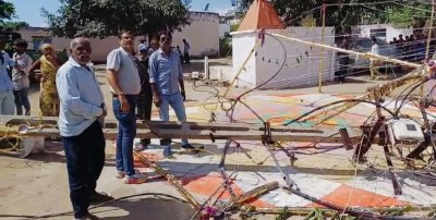 राजकोट. शहर के जामनगर रोड पर स्थित मन्हरपुर-1 गांव में बुधवार सुबह एक बड़ी जानलेवा दुर्घटना टल गई। तेज रफ्तार से आ रहे एक डंपर ने बिजली के तीन खंभों को गिरा दिया। इस कारण बिजली के खंभे गरबा मंडप पर गिरने से गरबा मंडप भी टूट गया।