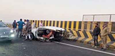 तेज रफ्तार से जा रही कार ओवरब्रिज पर डिवाइडर से टकराकर दुर्घटनाग्रस्त हो गई और उसके दो टुकड़े हो गए। हादसे में युवक-युवती की मौके पर और एक युवक की अस्पताल में मौत हुई। कार की हालत देखकर अंदाजा लगाया जा सकता है कि टक्कर कितनी भयानक रही होगी।
