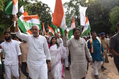 मेहसाणा. 'हर घर तिरंगा' अभियान के तहत मंगलवार को मेहसाणा में तिरंगा यात्रा निकाली गई। पुलिस परेड ग्राउंड से स्वास्थ्य मंत्री ऋषिकेश पटेल और जिला प्रभारी मंत्री जगदीश विश्वकर्मा ने तिरंगा यात्रा को रवाना किया और इसमें शामिल हुए। तिरंगा यात्रा में बीएसएफ, सीआईएसएफ, पुलिस, होमगार्ड और स्कूली छात्रों के साथ बड़ी संख्या में लोगों ने उत्साहपूर्वक भाग लिया। हाथों में तिरंगा लिए युवाओं ने पूरे माहौल को देशभक्ति के रंग में रंग दिया। पुलिस परेड ग्राउंड से रवाना होकर तिरंगा यात्रा फव्वारा सर्कल, नगर पालिका टाउन हॉल, हैदरी चौक, जिला न्यायालय, तहसील पंचायत, जिला पंचायत होते हुए पुन: परेड ग्राउंड पहुंची।