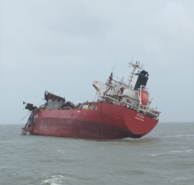 जहाज रविवार दोपहर कंडला पोर्ट के नौवहन चैनल से निकला, तभी एक रहस्यमय विस्फोट हुआ। विस्फोट के साथ जहाज समुद्र में एक तरफ झुकने लगा।