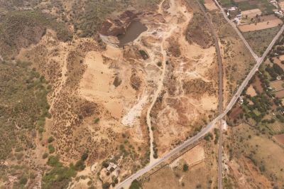 रेलवे लाइन से करीब एक किमी के दायरे में पहाड़ी छोर पर खनन चल रहा है लेकिन एक छोर पर रेलवे लाइन के बहुत करीब रेत के टीलों का खनन कर नीचे से पत्थरों के खनन की तलाश भी जारी है। ताकि एक खान में पानी भरा होने पर पास से पत्थरों का खनन भी लगातार जारी रह सके।