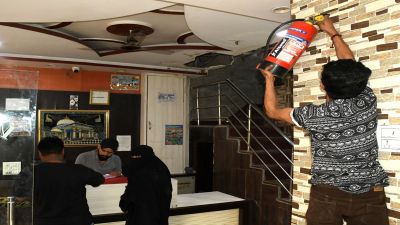 अजमेर. जिला कलक्टर द्वारा गठित जांच कमेटी ने डिग्गी बाजार स्थित होटल नाज अग्निकांड में प्रथम दृष्टया रिसेप्शन काउंटर के पास बने विद्युत पैनल बोर्ड में शॉर्ट सर्किट से आग लगना माना है। बोर्ड में लगी आग सीढि़यों की लकड़ी की रेलिंग से ऊपरी मंजिलों तक पहुंच गई। कमरों में लगी फॉल्स सीलिंग से आग ने विकराल रूप ले लिया। मामले में होटल मालिक की लापरवाही को भी हादसे का कारण माना जा रहा है।जिला कलक्टर को सौंपी रिपोर्ट में भवन में आपात स्थिति में आग से निपटने के लिए पर्याप्त अग्निशमन उपकरण, रस्से, जाल व सायरन नहीं होना वेंटीलेशन की कमी का भी उल्लेख किया गया है।