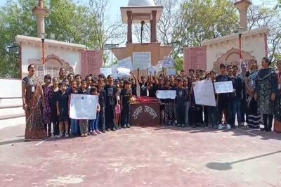 जम्मू-कश्मीर के पहलगाम में हुए आतंकी हमले के बाद देशभर में गुस्सा है। इसी क्रम में अलवर शहर के ब्लू बेल्स अकैडमी स्कूल के बच्चों ने काले कपड़े पहनकर इस अमानवीय घटना का विरोध जताया। बच्चों ने शहीद स्मारक पर एकत्र होकर शहीदों को श्रद्धांजलि दी और "पाकिस्तान मुर्दाबाद", "आतंकवाद मुर्दाबाद", "हमले बंद करो, न्याय दो" जैसे नारे लगाए।