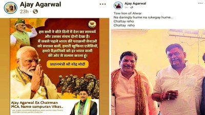 - 14 जुलाई को अजय अग्रवाल ने वन राज्यमंत्री संजय शर्मा के साथ अपनी एक फोटो सोशल मीडिया पर पोस्ट की थी। उस पर लिखा था- अलवर के दो शेर, न डरेंगे हम न रुकेंगे हम, चलते रहो-चलते रहो।