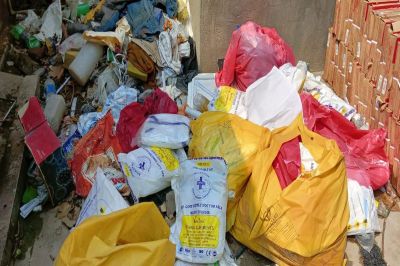 कोरोना महामारी के दौरान चिकित्सकों और नर्सिंग कर्मियों की जान बचाने में कारगर साबित हुई प्रीफिक्स प्रेजेंट पर्सनल प्रोटेक्टिव इक्विपमेंट (पीपीई) किट अब कूड़े के ढेर में दिखाई दे रही है।