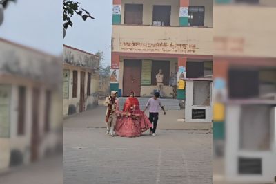 Bride-Groom Viral Video: राजस्थान में उपचुनाव के लिए आज 7 विधानसभा सीटों पर मतदान हुए जिसकी कई तस्वीरें और वीडियो सामने आए। इन वीडियो में दूल्हा-दुल्हन का एक वीडियो सोशल मीडिया पर जमकर वायरल हो रहा है। वायरल हो रहे वीडियो में दूल्हा और अन्य युवक दुल्हन का भारी-भरकम शादी का लहंगा पकड़कर दुल्हन को मतदान केंद्र तक ले जाते दिख रहे हैं। वायरल वीडियो को राजस्थान सरकार के सूचना एवं जनसम्पर्क विभाग के सोशल मीडिया हैंडल पर भी शेयर किया गया है। वीडियो को शेयर करते हुए कैप्शन दिया है 'राजस्थान विधानसभा उपचुनाव-2024, पहले मतदान से लोकतंत्र में भागीदारी, फिर उठी डोली।'