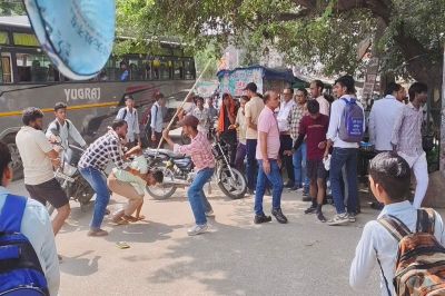 स्कूल से निकलते समय दो गुटों में मामूली कहासुनी हुई। माहौल इतना बिगड़ा कि दोनों पक्षों ने अपने बाहरी साथियों को बुला लिया। देखते ही देखते दर्जनभर से ज्यादा युवक आमने-सामने हो गए। प्रत्यक्षदर्शियों के मुताबिक, छात्रों और बाहरी युवकों ने पास की रेहड़ियों-ठेलों से लाठियां उठाईं और सड़क पर ही भिड़ गए। इस झगड़े के चलते दोनों तरफ वाहनों की लंबी कतारें लग गईं। कई दुकानों का सामान भी बर्बाद हो गया।