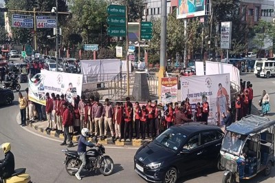 सड़क सुरक्षा माह के तहत अलवर शहर में स्कूली बच्चों की ओर से जन जागरूकता रैली निकाली गई।