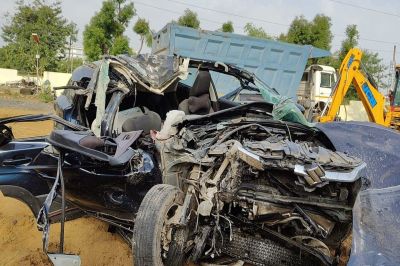 हादसा रात करीब 3 बजे नीमराणा पुलिस थाने के सामने हुआ। बताया जा रहा है कि सभी कार सवार खाटू श्यामजी के दर्शन कर लौट रहे थे और गुरुग्राम के खांडसा की ओर जा रहे थे। तेज रफ्तार मारुति गाड़ी (फ्रोंक्स) हाईवे पर खड़े ट्रेलर में पीछे से जा टकराई। टक्कर इतनी जोरदार थी कि कार के परखच्चे उड़ गए और वह ट्रेलर में बुरी तरह फंस गई।