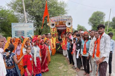 ग्रामीणों ने जगह-जगह पुष्प वर्षा कर पदयात्रा का स्वागत किया। यह यात्रा मोतीवाड़ा से रवाना होकर नीमला, राजगढ़, माचाड़ी, बारा, भडकोल, लक्ष्मणगढ़, टिटपुरी, नगर और डीग होते हुए 1 सितंबर को गोवर्धन धाम पहुंचेगी।