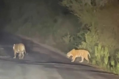 अलवर-जयपुर रोड (वाया भर्तृहरि) पर देर रात रोमांचक नजारा देखने को मिला, जब टाइगर एसटी 2304 और बाघिन एसटी 9 सड़क के बीच आकर बैठ गए।