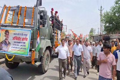 भारतीय सेना के अग्निवीर जवान संजीव सैनी का सोमवार को उनके पैतृक गांव तिजारा में पूरे सैनिक सम्मान के साथ अंतिम संस्कार किया गया। इससे पहले शहर के अहिंसा सर्किल से उनकी अंतिम यात्रा निकाली गई, जहां हजारों की संख्या में स्थानीय लोग, प्रशासनिक अधिकारी और परिजन उन्हें अंतिम विदाई देने पहुंचे।