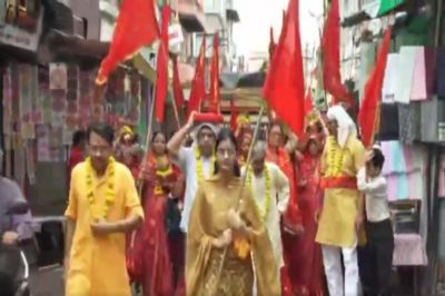 VIDEO: देवी महापुराण की कथा प्रारंभ, निकली कलश यात्रा